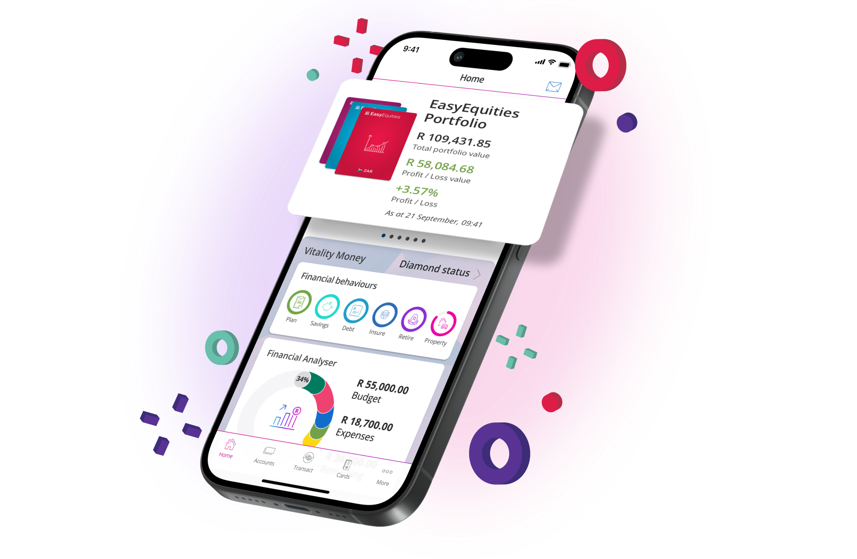 Access the EasyEquities platform to invest in shares, ETFs, property and other investments securely and conveniently through the Discovery Bank app in just a few taps. We're empowering you to manage your money well and boost your financial health.