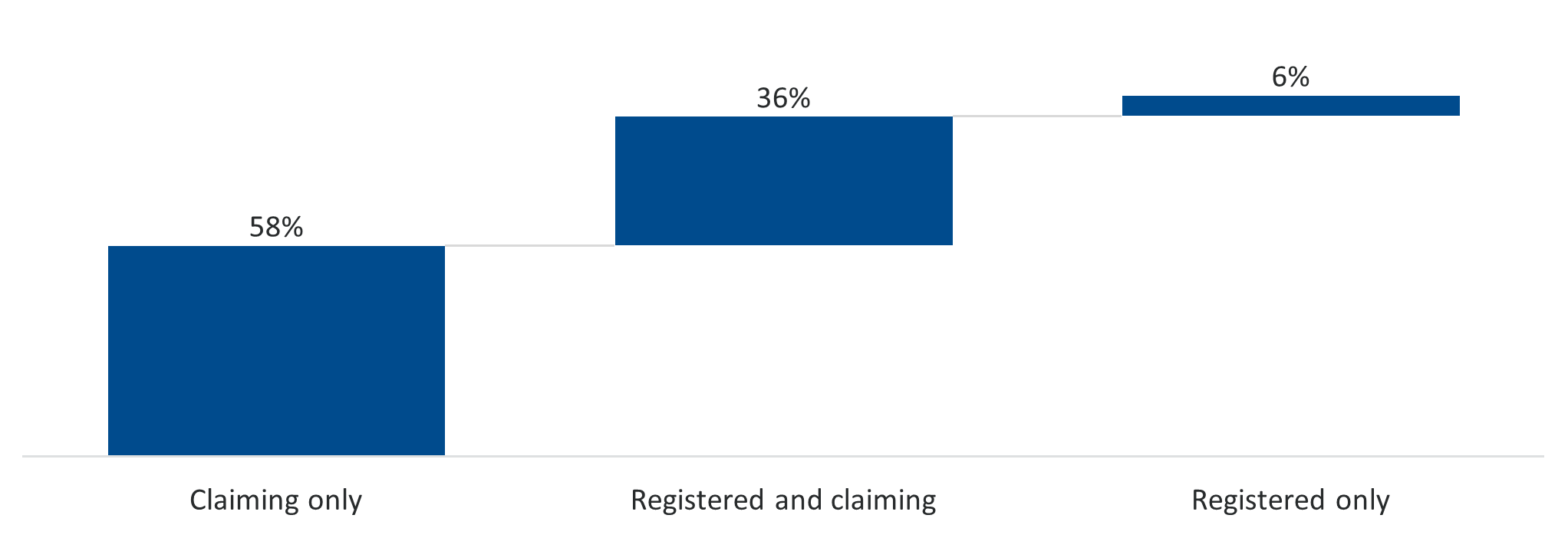 In 2024, 58% of the population with a mental health condition claimed for a mental health condition but did not register for the available basket of care (Figure 1). This gap in access to care shows there is potential stigma linked to registering for a mental health condition. There is a need for making sure Scheme members know that condition‑specific benefits are available to them. As shown in Figure 1, 36% of the population both registered for the condition and claimed for the related mental health benefits.