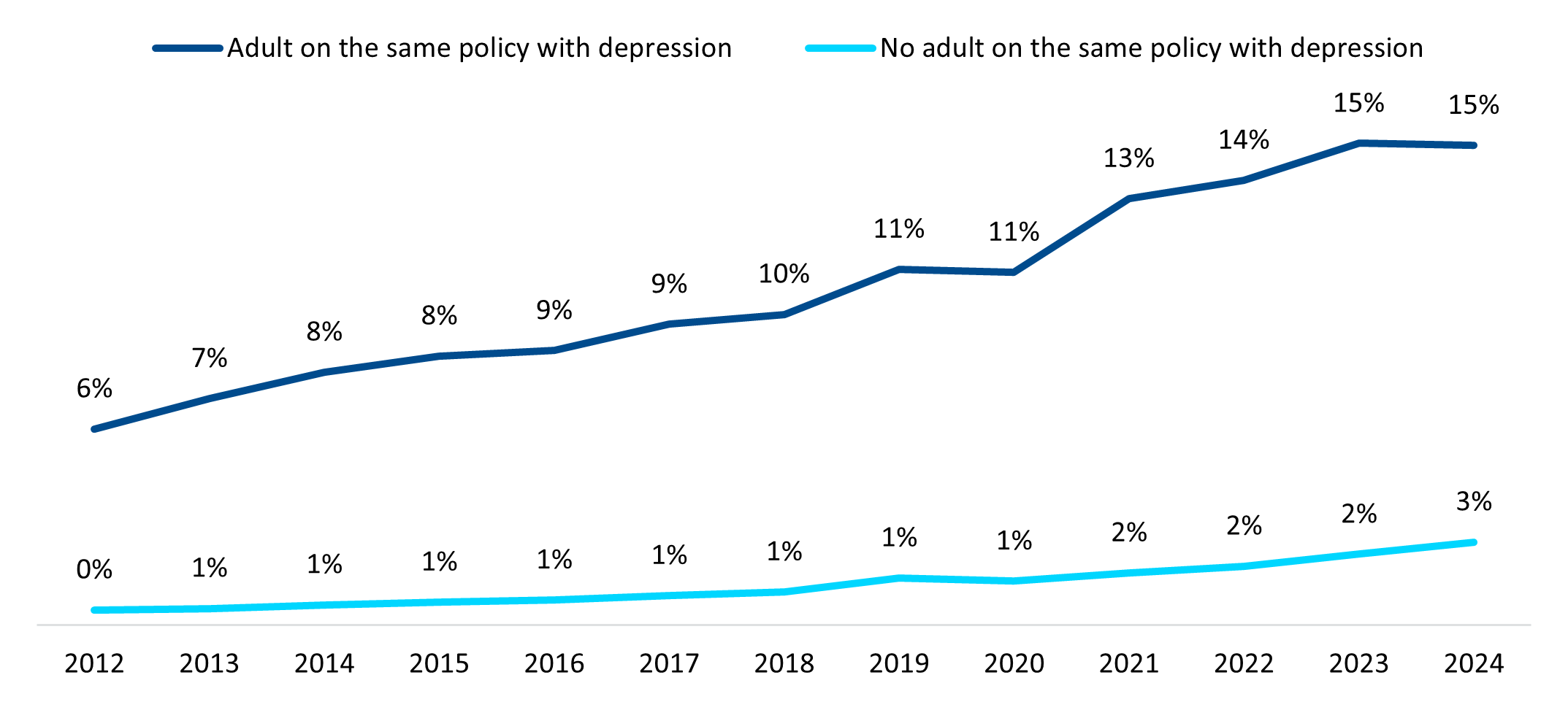 Family structure also plays a role. Members on single policies show higher rates of mental health conditions, possibly linked to isolation. Children in families where an adult has depression are five times more likely to be diagnosed themselves.