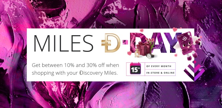 So save your Ðiscovery Miles for Sunday, 15 February, and get 10% to 30% off at 49 Ðiscovery Miles in-store and online retail partners.