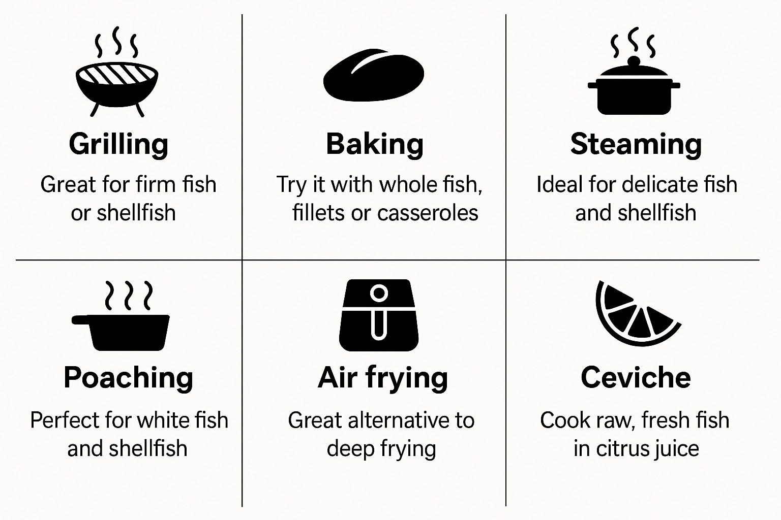 You don't need a deep fryer to make seafood. Try these cooking methods for delicious and nutritious seafood dishes.