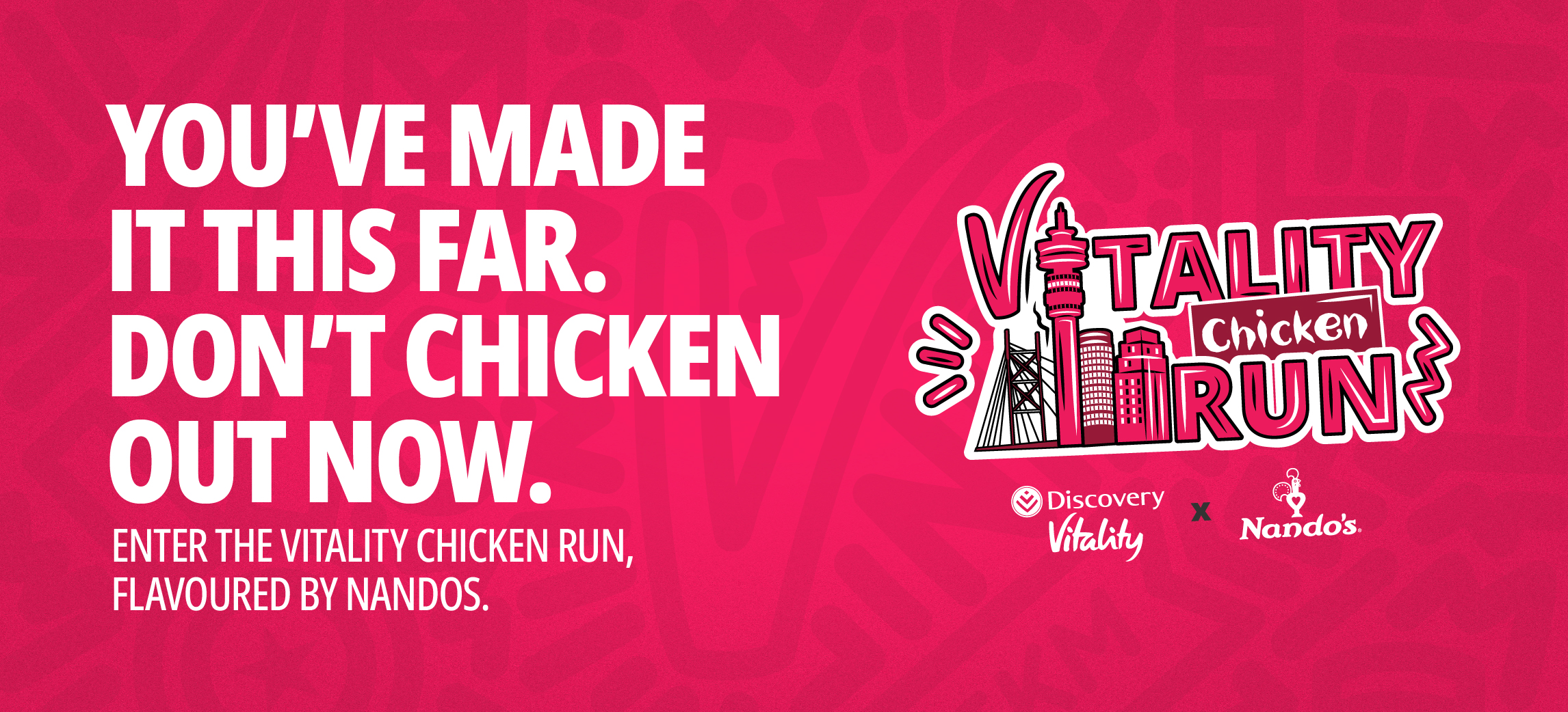Ready for a full-flavoured Jozi experience? Join us on Saturday 8 November for the Vitality Chicken Run, flavoured by Nando's. Whether you're an ultra-marathon maestro or a running rookie, don't miss this fearless celebration of fun, flavour and fitness.